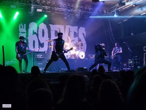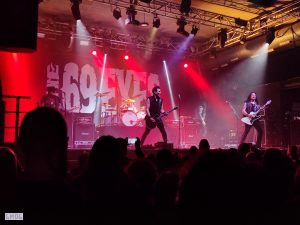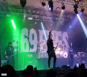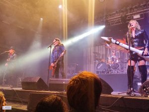 C’est donc via cette atmosphère que D.A.D présente son show. D’entrée, Jesper descend de scène pour se joindre à la foule, ce qui ne laisse ainsi place à aucun round d’observations entre le groupe et le public.