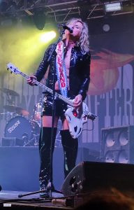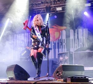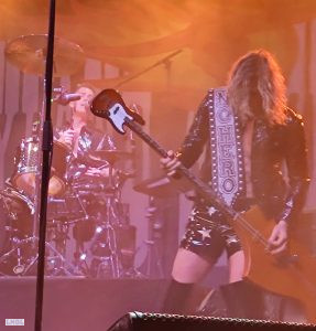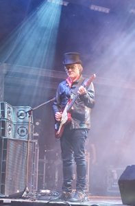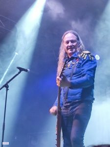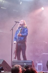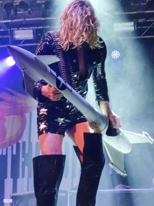 Rajoutons le fantasque bassiste aux célèbres accoutrements qui raviraient un Elton JOHN, et à ses basses toutes autant déjantées que belles ; Le bonhomme sait de surcroît tenir les poses et occuper la scène : un vrai showman et bon ”client” pour les photographes. Bref on est captivé dès le premier instant.