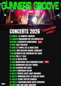 Nicole : La soul est une musique qui est en moi et j’ai toujours voulu chanter rock et bluesy. Donc l’évolution s’est faite de façon naturelle ! Je voulais tendre davantage vers le rock. J’ai chanté avec un groupe Rock en Angleterre et j’ai beaucoup aimé. Alors quand je suis revenu ici, je voulais faire toujours du rock. Avec GUNNERS GROOVE, cela a de suite fonctionné. On voulait tous faire la même chose. On s’est préparé quelques temps sur les reprises mais nous avions tous la volonté de composer. Nous sommes sur la même longueur d’ondes ! Et ce qui fait plaisir, c’est qu’il y a du mouvement, des concerts de programmer, ça bouge, c’est bien ! (ndla : Effectivement, le groupe s’est déjà produit sur une quarantaine de dates en 2025 dans le grand Sud-Ouest, et 2026 semble aussi parti sur les mêmes bases ; il vous sera difficile de ne pas les croiser sur la route ou plutôt dans un bon pub!)